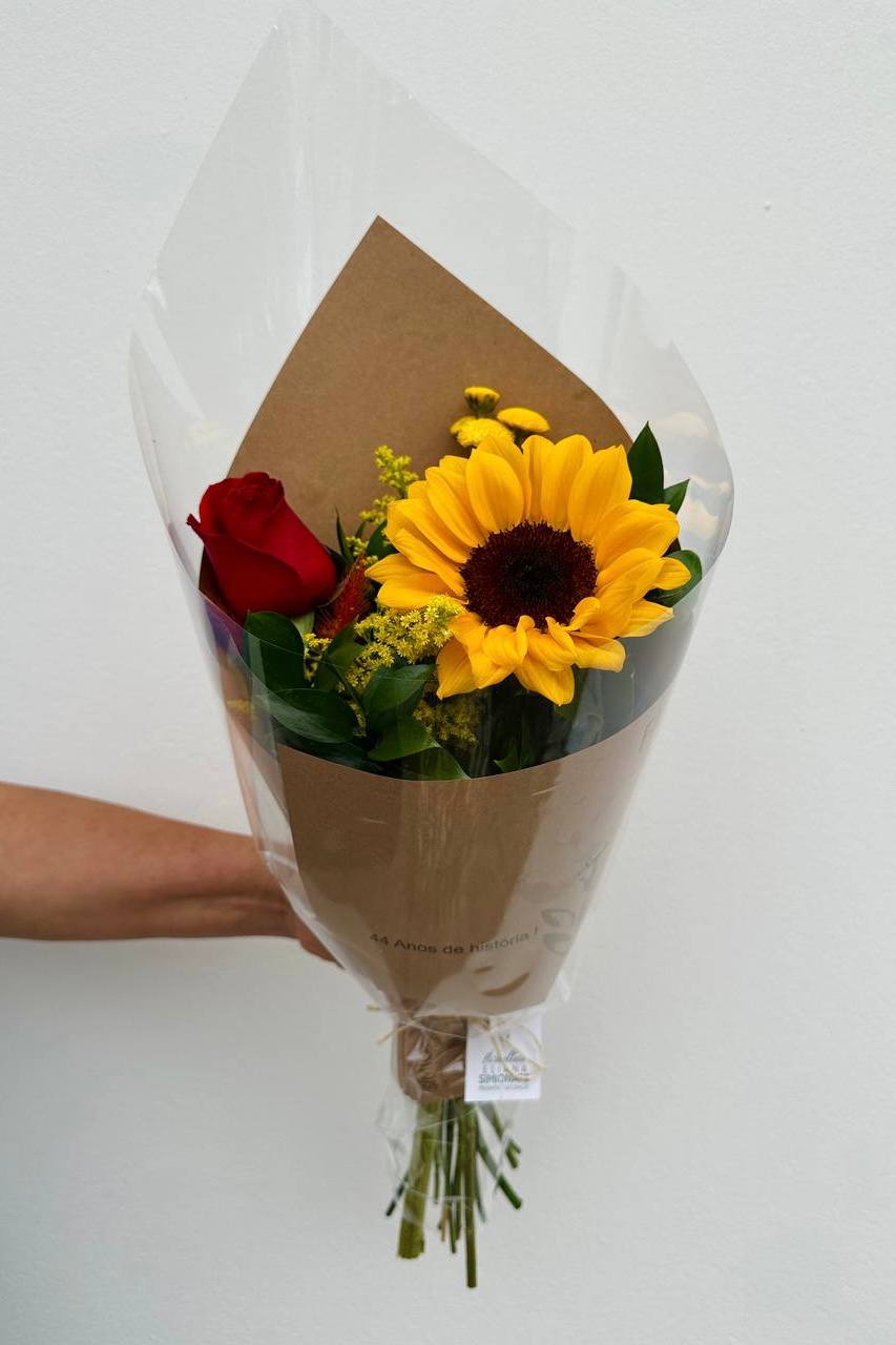 Este buquê combina a energia vibrante do girassol com a paixão da rosa vermelha — um presente perfeito para expressar carinho, admiração ou amor em sua forma mais pura. Ideal para pequenas surpresas, gestos de gratidão ou declarações discretas, mas cheias de significado.