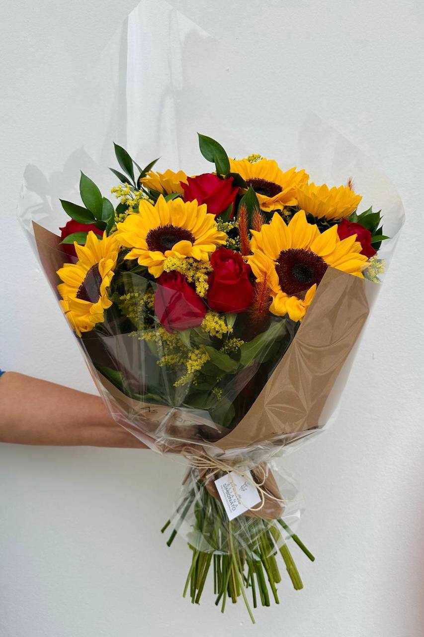 Com seis girassóis e seis rosas vermelhas, este buquê representa uma celebração de sentimentos verdadeiros e duradouros. É o presente ideal para momentos marcantes, aniversários, pedidos especiais ou simplesmente para iluminar o dia de quem você ama.