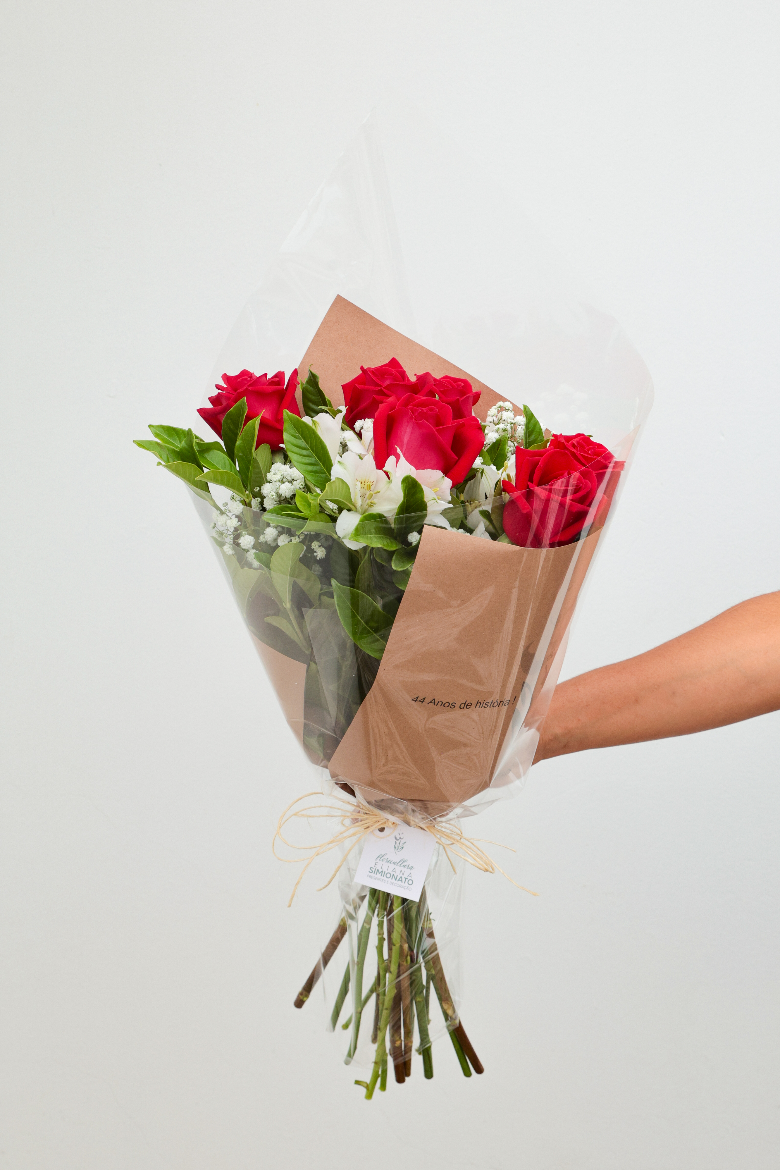 O Buquê com 6 Rosas Vermelhas Nacionais da Floricultura Eliana representa paixão e sofisticação em dobro. Uma escolha ideal para presentear em datas românticas ou comemorações que pedem mais intensidade.