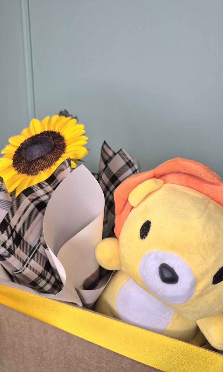 O girassol, símbolo de vitalidade e alegria, vem plantado em vaso para que os pais aproveitem sua beleza prática e duradoura. Já o Baby Lion é um leãozinho de pelúcia macio e carinhoso, pronto para se tornar o novo guardião de aventuras do bebê.